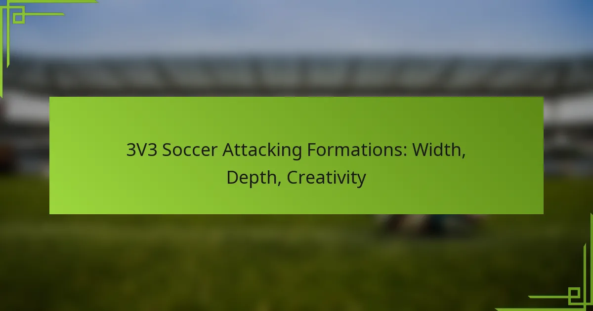 In 3v3 soccer, effective attacking formations are essential for maximizing width, depth, and creativity to generate scoring opportunities. Utilizing setups like triangles, diamonds, and lines can enhance a team’s tactical approach, allowing players to stretch defenses and create space. By focusing on these elements, teams can improve their attacking strategies and overall performance on the field.